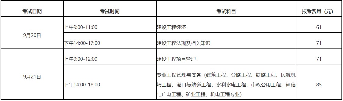 考試時(shí)間、科目及報(bào)考費(fèi)用
