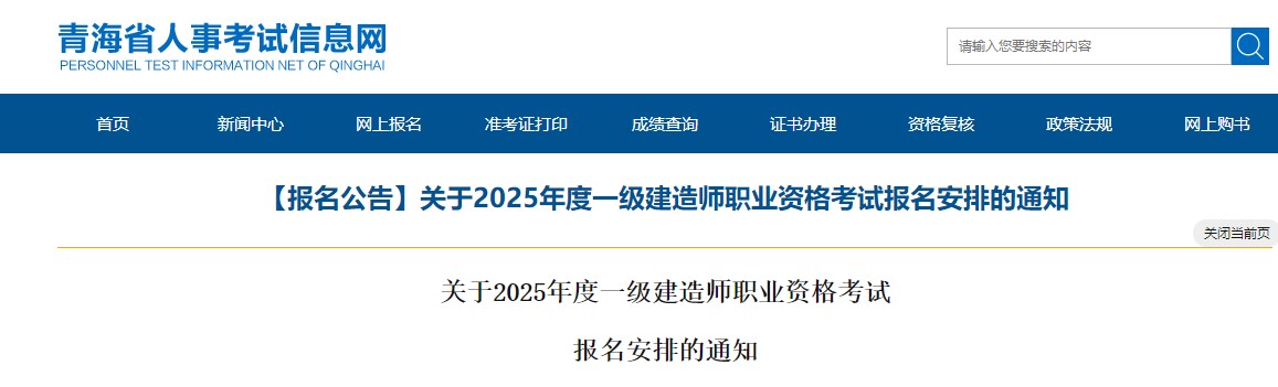 青海省人事考試信息網發(fā)布【報名公告】關于2025年度一級建造師職業(yè)資格考試報名安排的通知,具體信息如下: