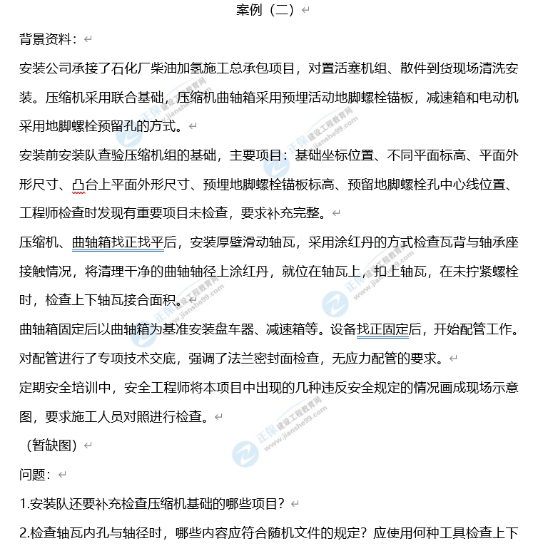 2023年一級(jí)建造師機(jī)電工程真題及答案解析案例二。建設(shè)工程教育網(wǎng)考后將會(huì)根據(jù)學(xué)員反饋,及時(shí)匯總一級(jí)建造師機(jī)電工程真題分享給大家,并且會(huì)及時(shí)做出答案解析,希望能為廣大一建考生朋友帶來幫助。