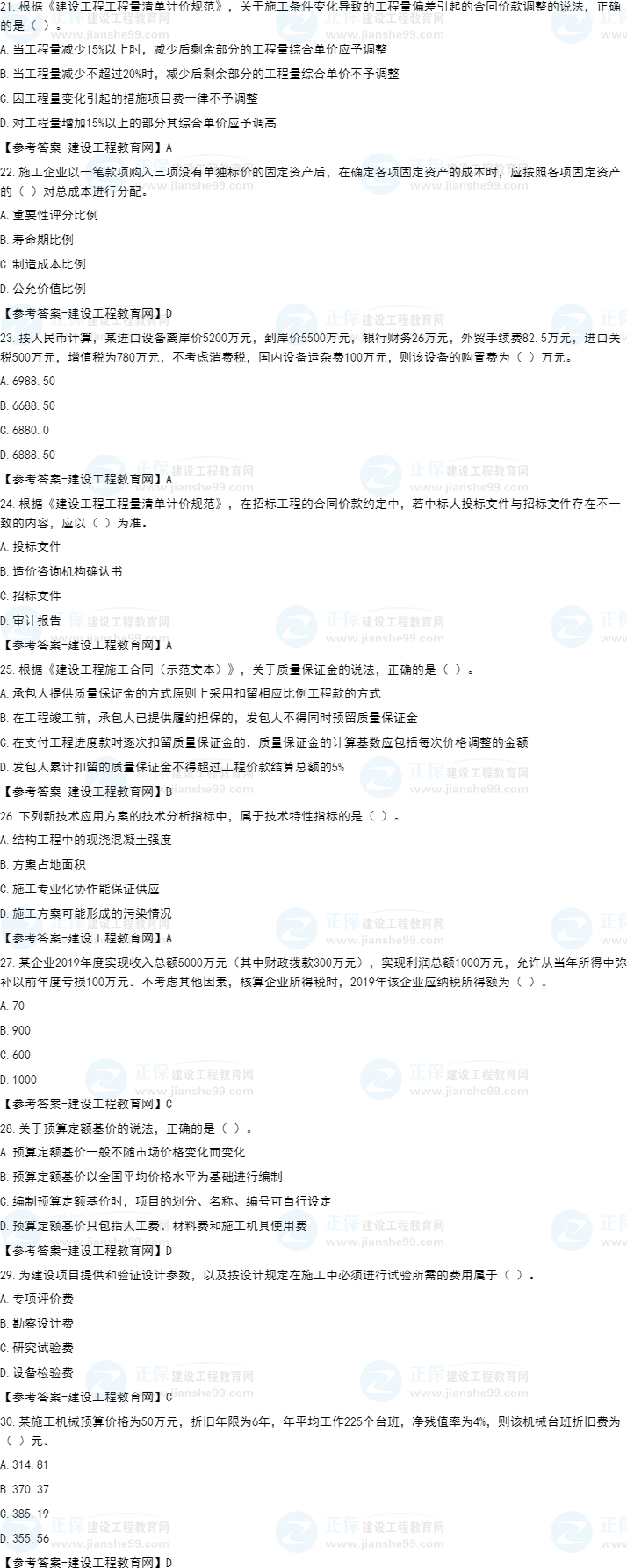 2022年一級(jí)建造師工程經(jīng)濟(jì)補(bǔ)考試題及答案21-30題。建設(shè)工程教育網(wǎng)考后將會(huì)根據(jù)學(xué)員反饋,及時(shí)匯總2022年一級(jí)建造師工程經(jīng)濟(jì)補(bǔ)考試題及答案分享給大家,并且會(huì)及時(shí)做出答案解析,希望能為廣大一建考生朋友帶來(lái)幫助。
