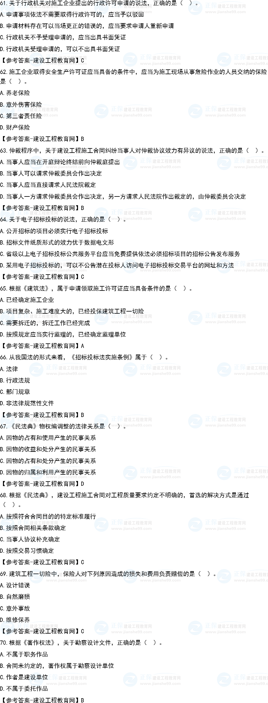 2022年一級建造師考試(補(bǔ)考)工程法規(guī)試題及答案解析61-70題