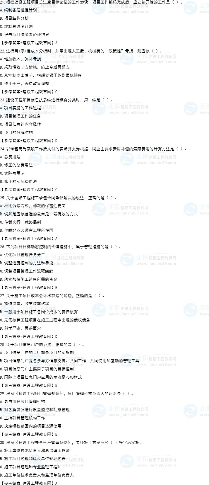 2022年一級(jí)建造師考試(補(bǔ)考)項(xiàng)目管理試題及答案解析21-30題