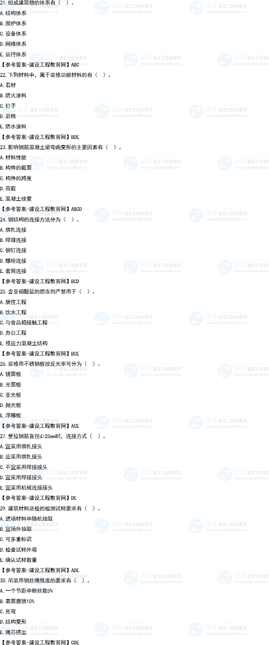 2022年一級建造師補(bǔ)考建筑工程試題及答案解析21-30題。建設(shè)工程教育網(wǎng)考后將會根據(jù)學(xué)員反饋,及時匯總2022年一級建造師補(bǔ)考建筑工程試題及答案解析分享給大家,并且會及時做出一級建造師答案解析,希望能為廣大一建考生朋友帶來幫助。