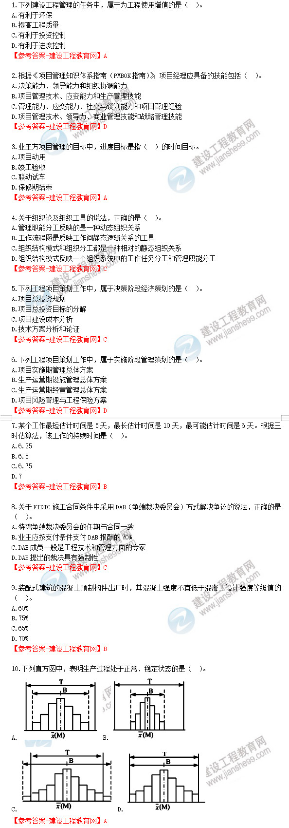 2019年一級建造師《建設(shè)工程項目管理》試題答案及解析1-10