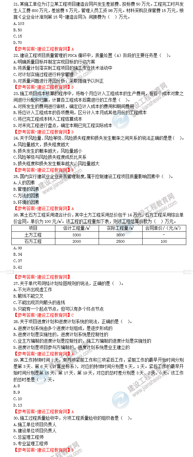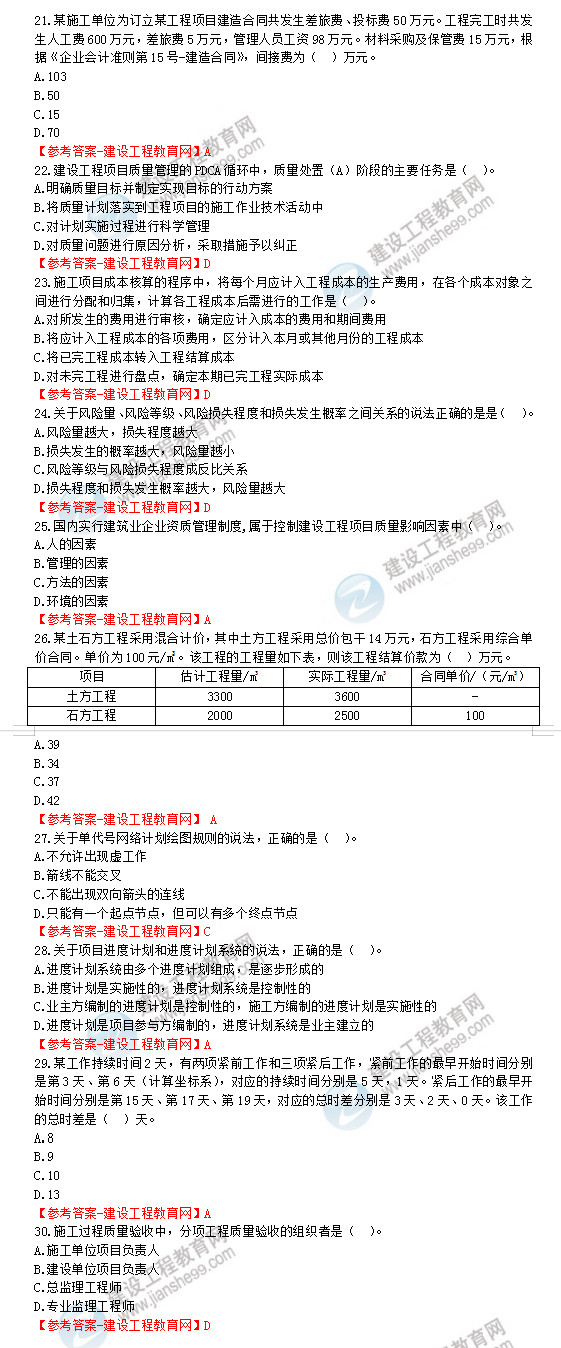 2019年一級建造師《建設工程項目管理》試題答案及解析21-30