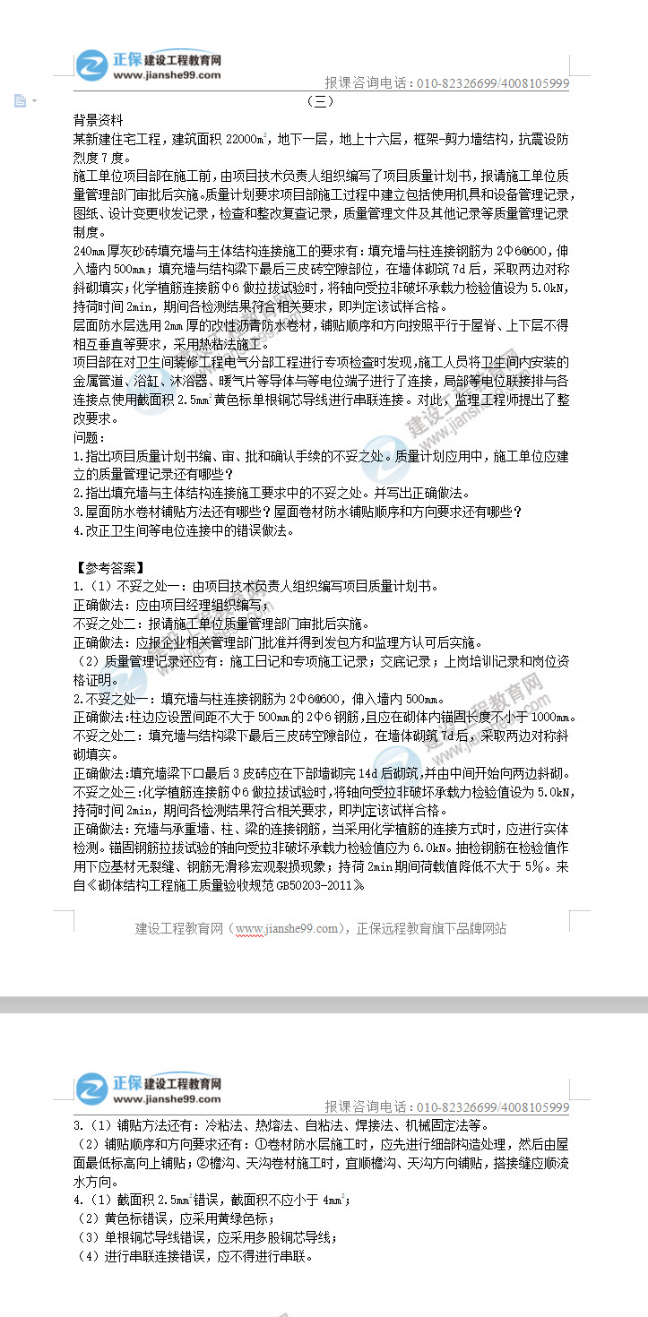 2019年一級(jí)建造師《建筑實(shí)務(wù)》試題及答案解析案例三