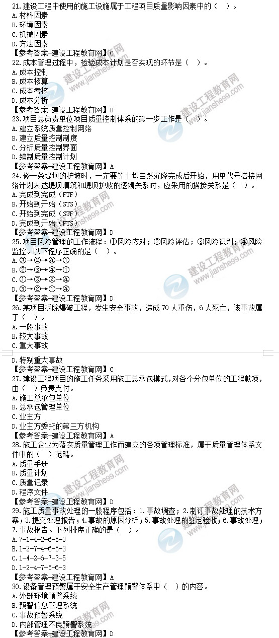 2022年一級(jí)建造師考試項(xiàng)目管理試題及答案解析21-30題
