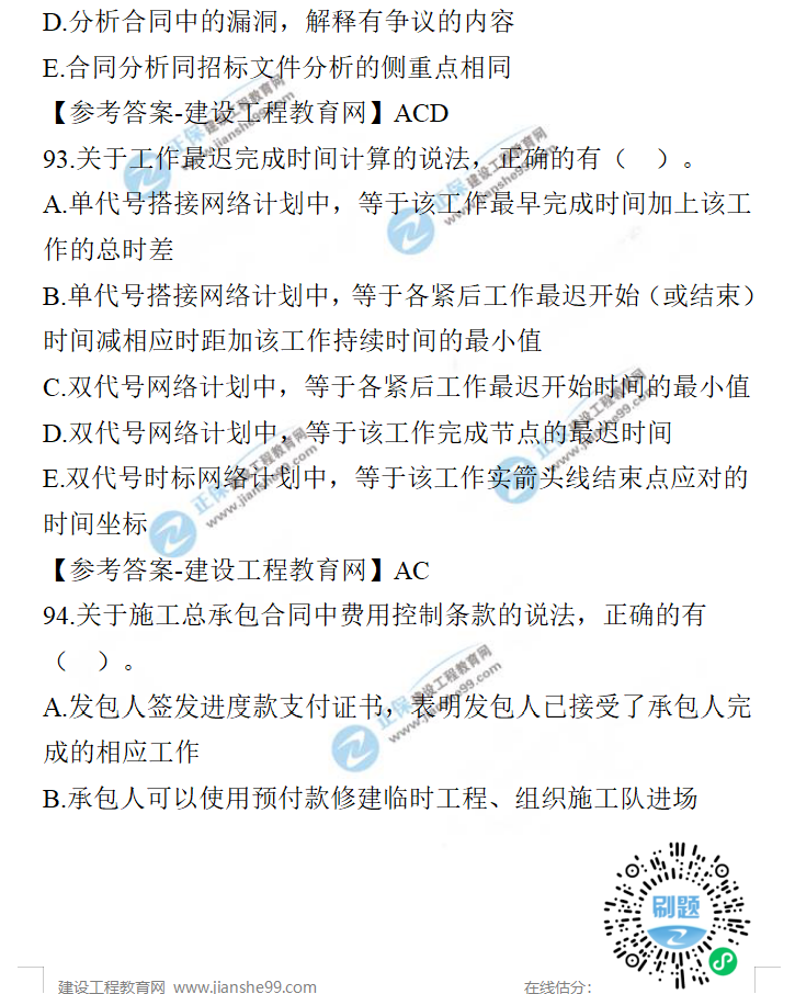 2022年一級建造師考試項目管理試題及答案解析91-100題
