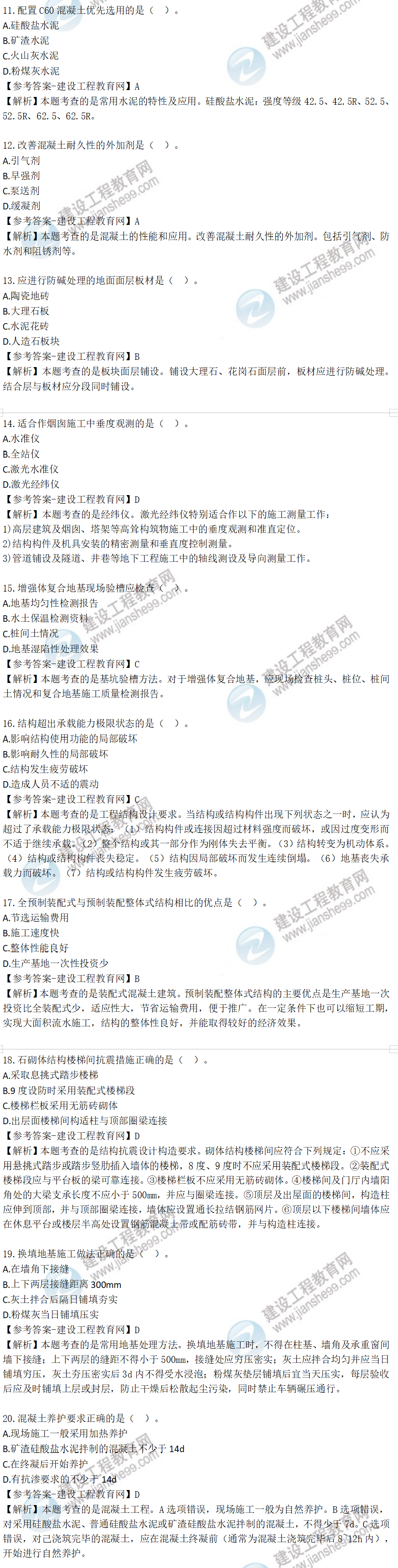 2022年一級(jí)建造師考試建筑工程試題及答案解析11-20題