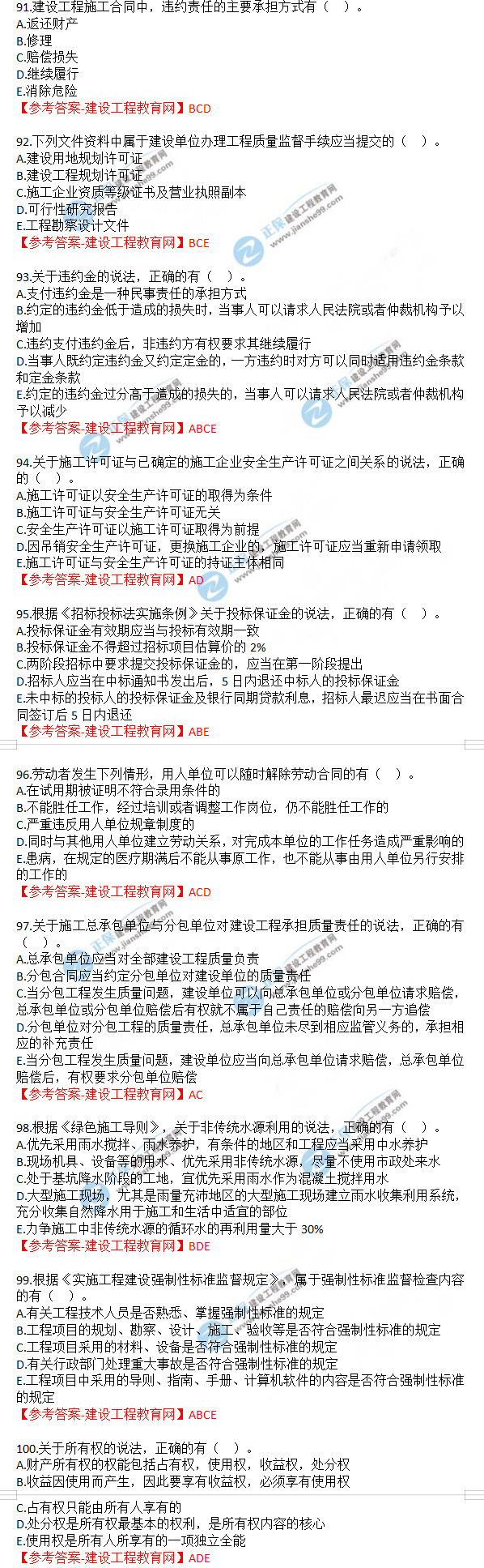 2019年一級(jí)建造師《建設(shè)工程法規(guī)及相關(guān)知識(shí)》試題答案及解析91-100