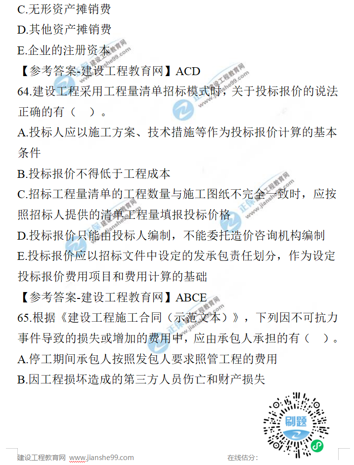 2021年一級建造師工程經(jīng)濟試題及答案61-70題