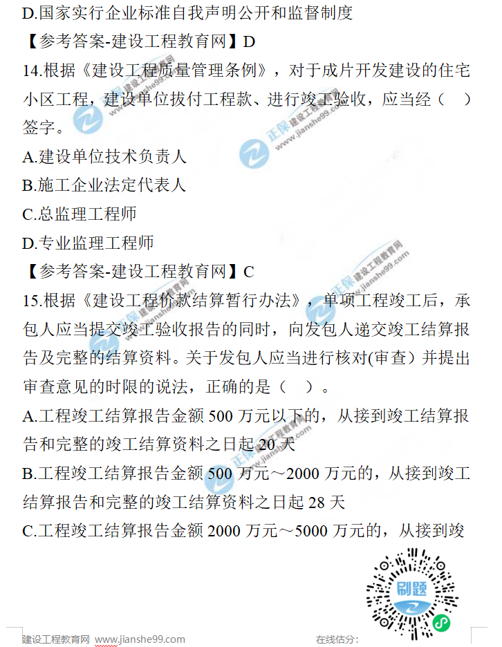 2021年一級建造師工程法規(guī)試題及答案11-20題,建設(shè)工程教育網(wǎng)考后將會根據(jù)學(xué)員反饋,及時匯總2021年一級建造師工程法規(guī)試題及答案分享給大家,并且會及時做出答案解析,希望能為廣大一建考生朋友帶來幫助。