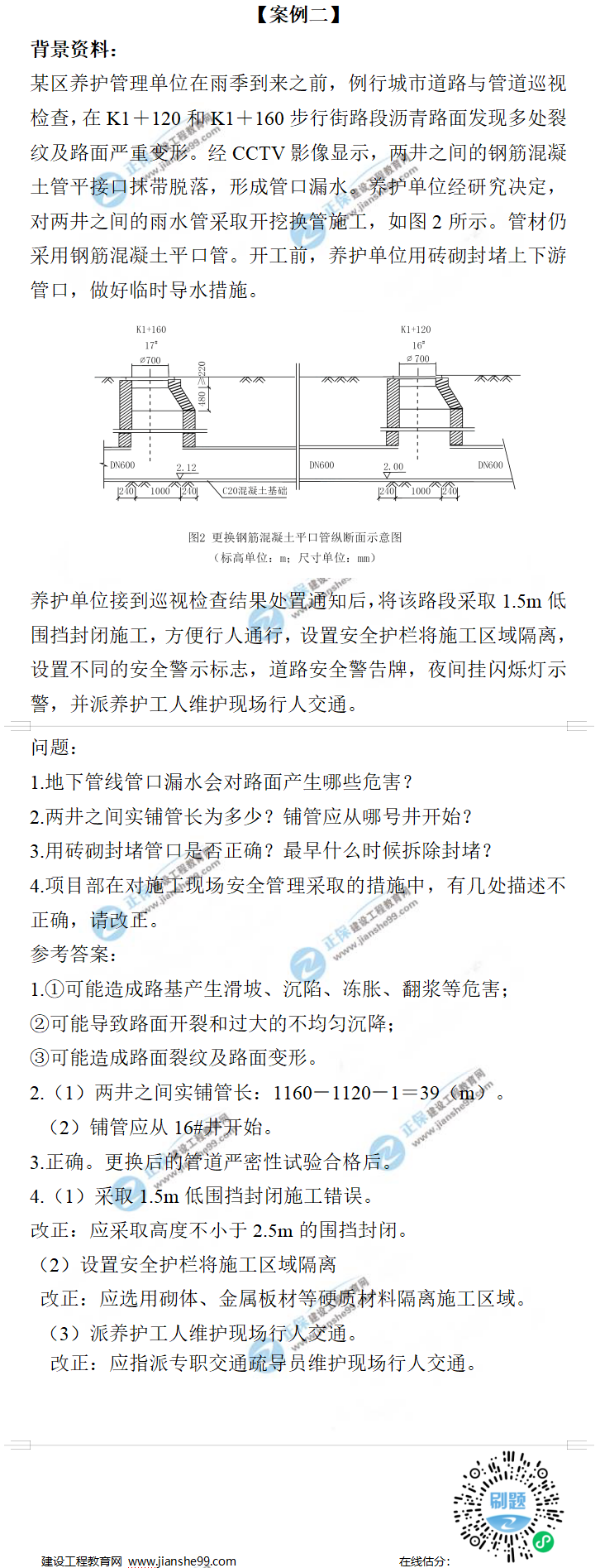 2021年一級(jí)建造師市政工程試題及答案解析案例二,建設(shè)工程教育網(wǎng)考后將會(huì)根據(jù)學(xué)員反饋,及時(shí)匯總2021年一級(jí)建造師市政工程試題及答案解析分享給大家,并且會(huì)及時(shí)做出一級(jí)建造師答案解析,希望能為廣大一建考生朋友帶來(lái)幫助。