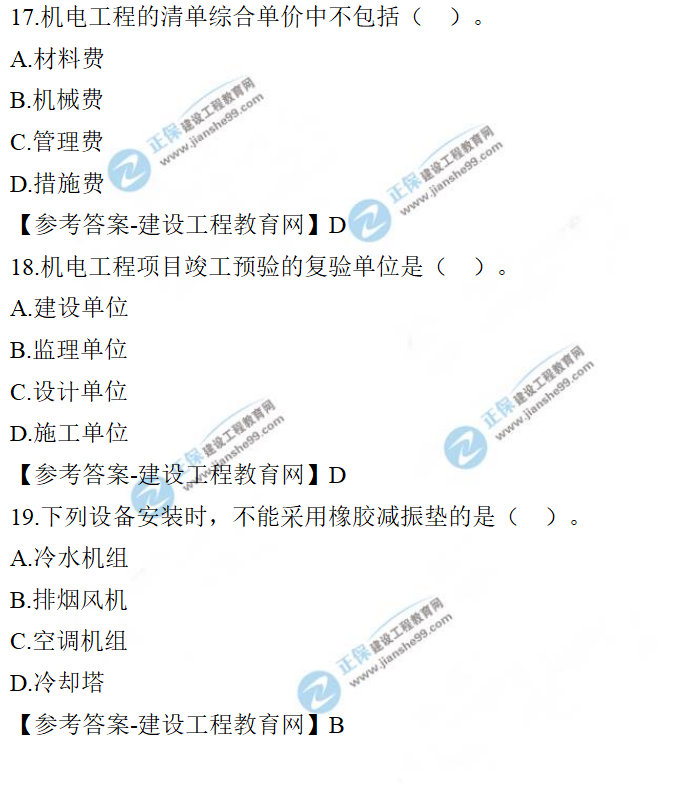 2021年一級(jí)建造師機(jī)電工程試題及答案解析11-20題