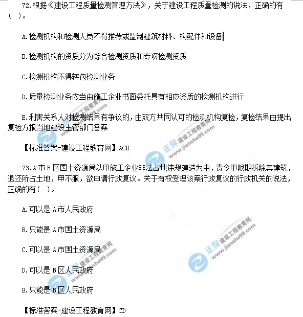 2018年一級建造師《法規(guī)》試題答案及解析(71-80)