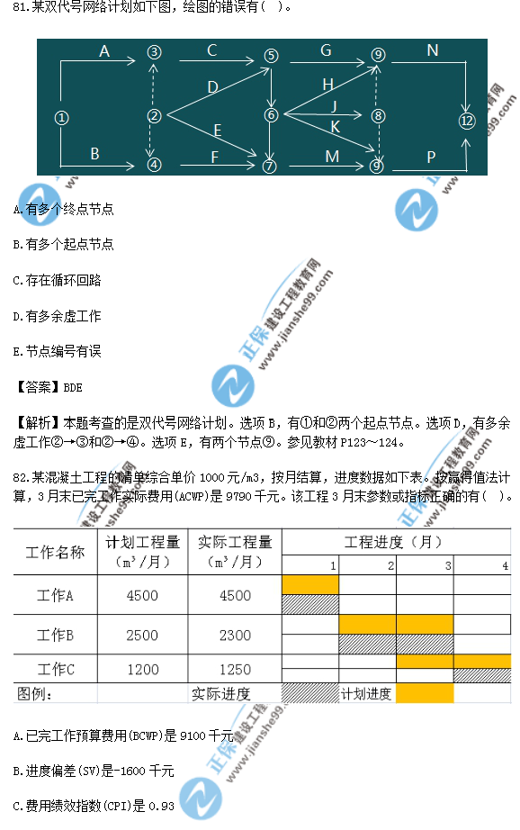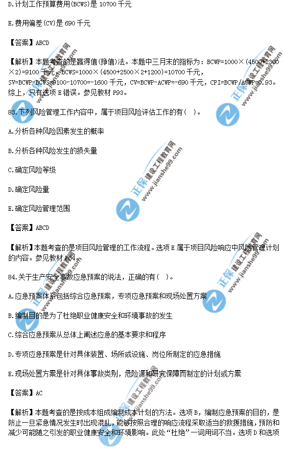 2018年一級(jí)建造師《項(xiàng)目管理》試題答案及解析(81-90),由考生回憶題干,建設(shè)工程教育網(wǎng)一級(jí)建造師考試教研組團(tuán)提供參考答案,供廣大考生進(jìn)行參考!點(diǎn)擊查看2019年一級(jí)建造師招生方案>>