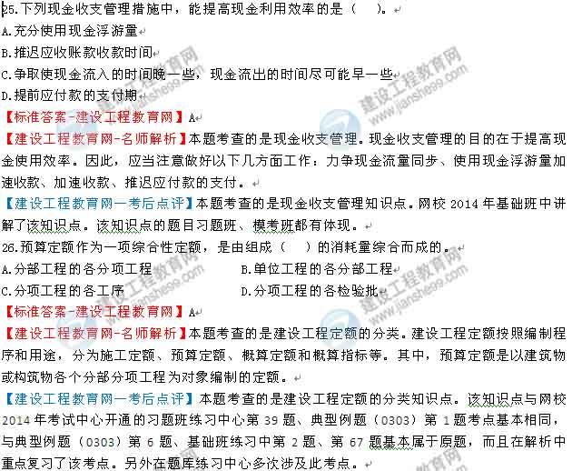 2014一級(jí)建造師工程經(jīng)濟(jì)答案及解析由老師整理而成,部分網(wǎng)站未經(jīng)許可擅自轉(zhuǎn)載、抄襲,造成內(nèi)容有所缺失或錯(cuò)誤,請大家以建設(shè)工程教育網(wǎng)發(fā)布為準(zhǔn)!