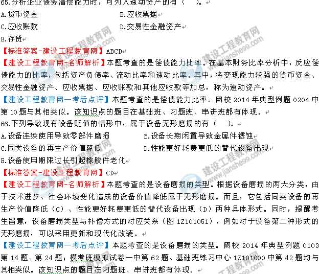 2014一級建造師《工程經(jīng)濟》考生試題及答案第62-67題,更多試題及答案在網(wǎng)頁下方