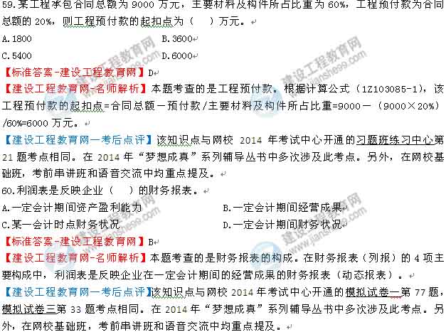 【老師解析】2014年一建工程經(jīng)濟試題及答案(56-61)