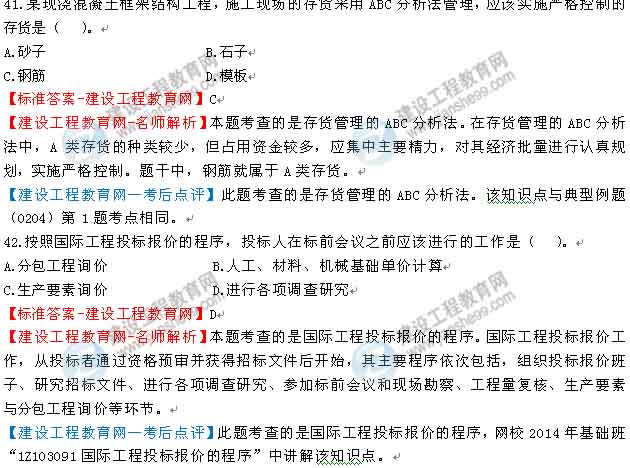 2014一級(jí)建造師《工程經(jīng)濟(jì)》考生試題及答案第35-41題,更多試題及答案在網(wǎng)頁下方