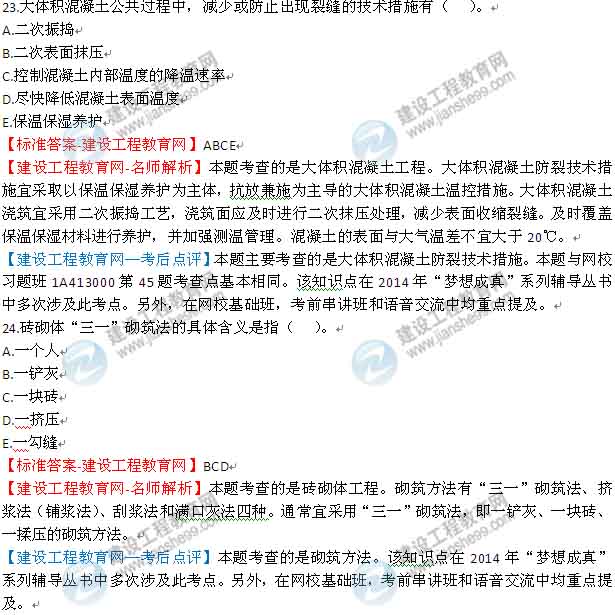 2014一級(jí)建造師《建筑實(shí)務(wù)》考生試題及答案第21-25題,更多試題及答案在網(wǎng)頁(yè)下方