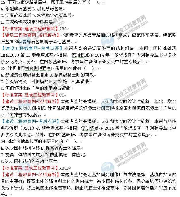 【老師解析】2014年一級(jí)建造師市政管理與實(shí)務(wù)試題及答案(21-25)