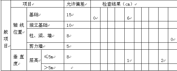事件二:五層某施工段現(xiàn)澆結(jié)構(gòu)尺寸檢驗(yàn)批驗(yàn)收表(部分)如下: