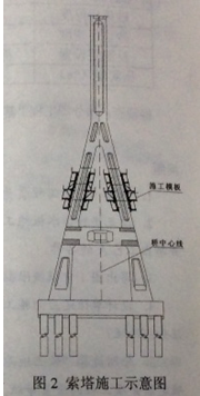 編制索塔施工方案時(shí),施工單位根據(jù)本橋索塔特點(diǎn),對(duì)滑模和爬模兩種施工方法進(jìn)行了比選,最終選擇了適合本橋特點(diǎn)的施工方案,塔索施工示意圖見圖2。