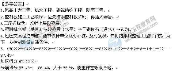 5. 分別計(jì)算“軟土地基”分項(xiàng)工程的得分值和評(píng)分值(保留至小數(shù)點(diǎn)后兩位),確定該分項(xiàng)工程的質(zhì)量等級(jí)。