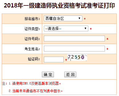 2018年西藏一級建造師考試準考證打印入口開通,打印時間為9月10日起,考生可登錄中國人事考試網(wǎng)-點擊左邊欄“打印準考證”,即可打印2018年西藏一級建造師準考證。