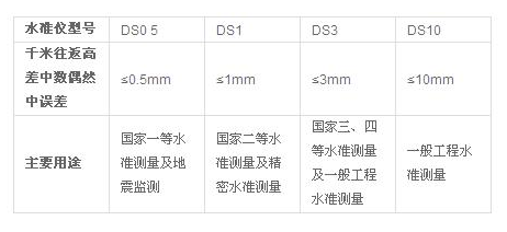 水準(zhǔn)儀的功能主要是水準(zhǔn)測(cè)量,各種型號(hào)水準(zhǔn)儀的用途如下表: