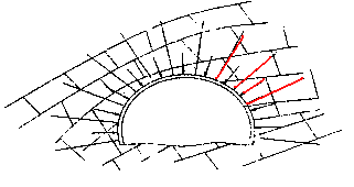 隧道是有一定圓弧形狀的,有圓弧,那就有直徑、半徑這些,所謂徑向也就是說是按照直徑的方向來進(jìn)行鉆孔,如下圖所示:
