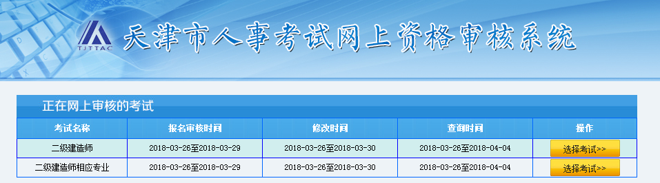 天津二級建造師考試網(wǎng)上資格審核時(shí)間為3月26日至29日,點(diǎn)擊圖片進(jìn)入網(wǎng)上資格審核
