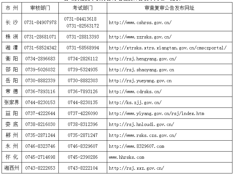 市州要及時在相關(guān)網(wǎng)站進行公示資格復審結(jié)果,接受舉報查實;資格審查通過的人員請關(guān)注“湖南人事考試網(wǎng)()”和市州網(wǎng)站上的證書發(fā)放公告,按公布的時間和地點領(lǐng)取資格證書和相關(guān)表格。