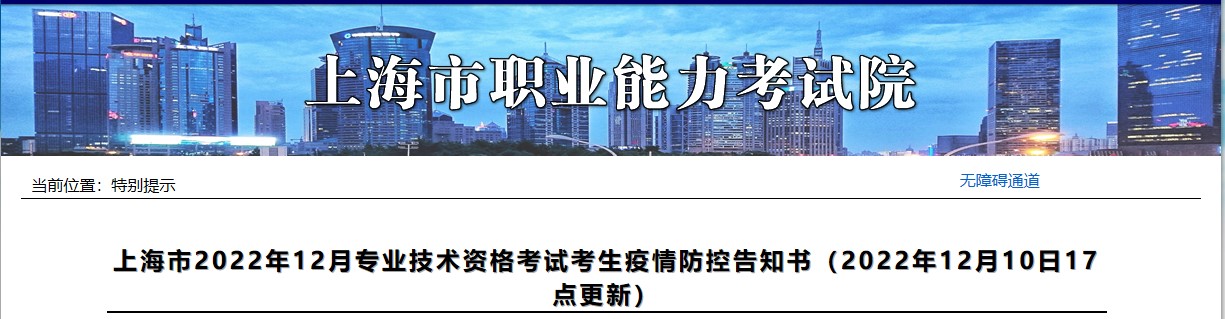 上海市2022年12月專業(yè)技術(shù)資格考試考生疫情防控告知書(2022年12月10日17點(diǎn)更新)