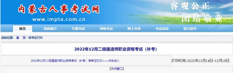 上海2022年二級(jí)建造師補(bǔ)考準(zhǔn)考證打印入口: