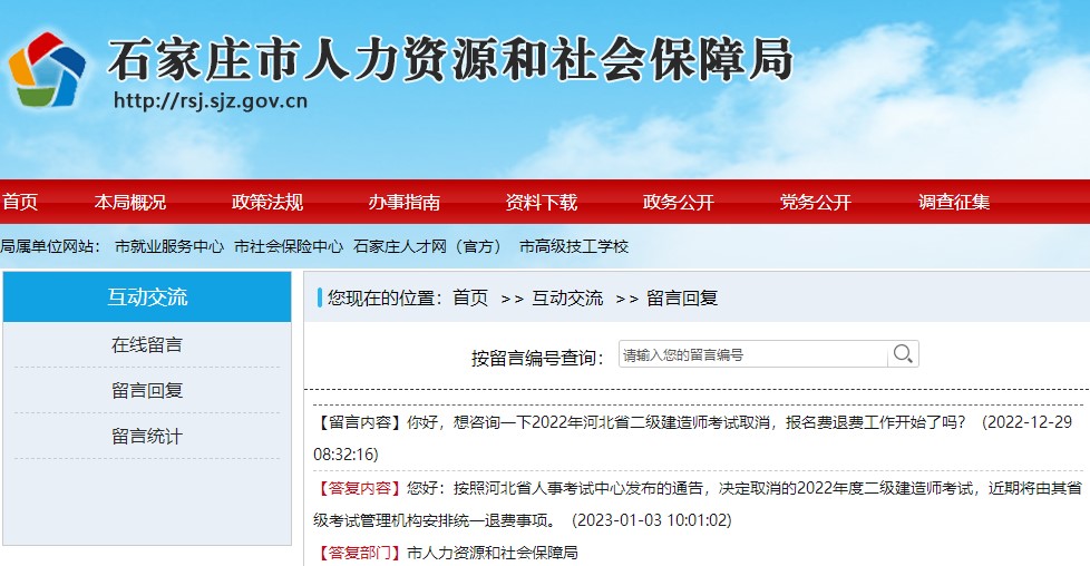 【留言內容】你好,想咨詢一下2022年河北省二級建造師考試取消,報名費退費工作開始了嗎?(2022-12-29 08:32:16)