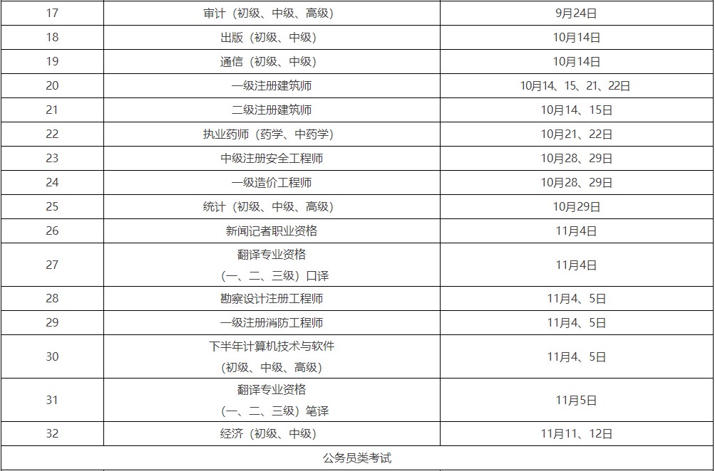注:本表中未涉及的考試另行通知。