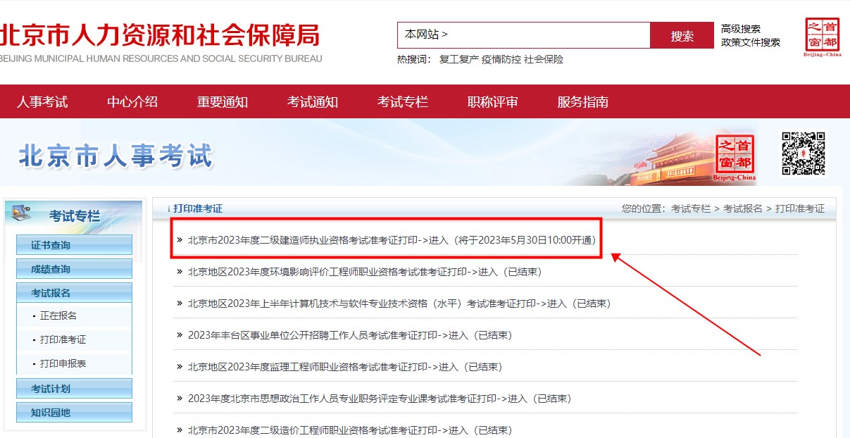 北京2023年二級(jí)建造師考試準(zhǔn)考證打印入口已開通