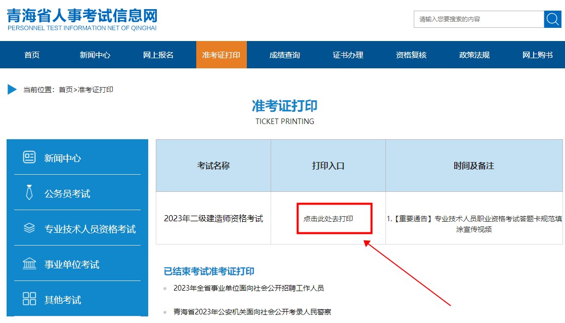 青海2023年二級建造師考試準考證打印入口:青海人事考試信息網(wǎng)