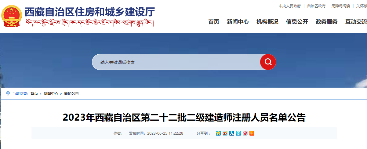 2023年西藏自治區(qū)第二十二批二級(jí)建造師注冊(cè)人員名單公告