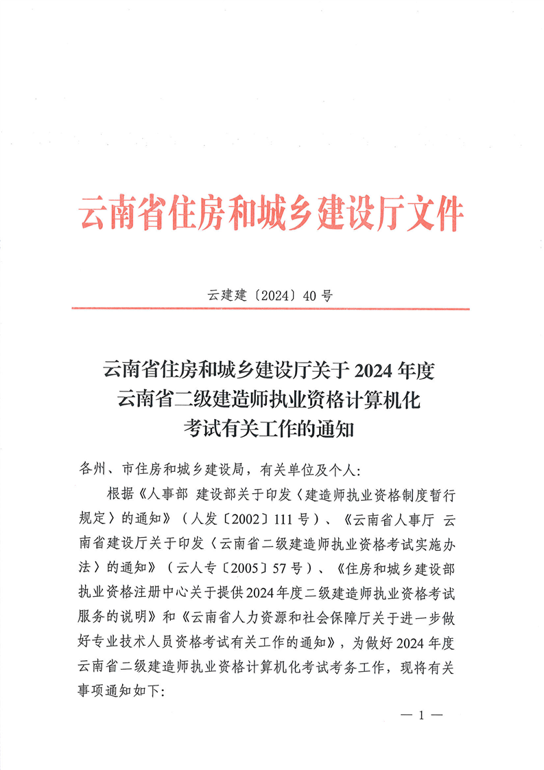 關(guān)于2024年度云南省二級(jí)建造師執(zhí)業(yè)資格計(jì)算機(jī)化考試有關(guān)工作的通知