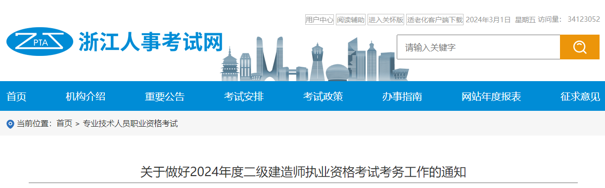 關(guān)于做好2024年度浙江二級建造師執(zhí)業(yè)資格考試考務工作的通知