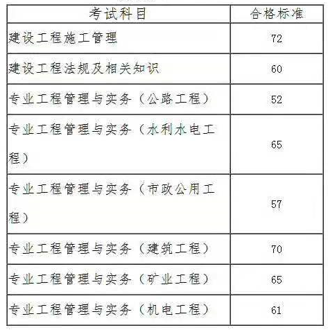 2019年度安徽省二級建造師執(zhí)業(yè)資格考試各科目合格標準如下: