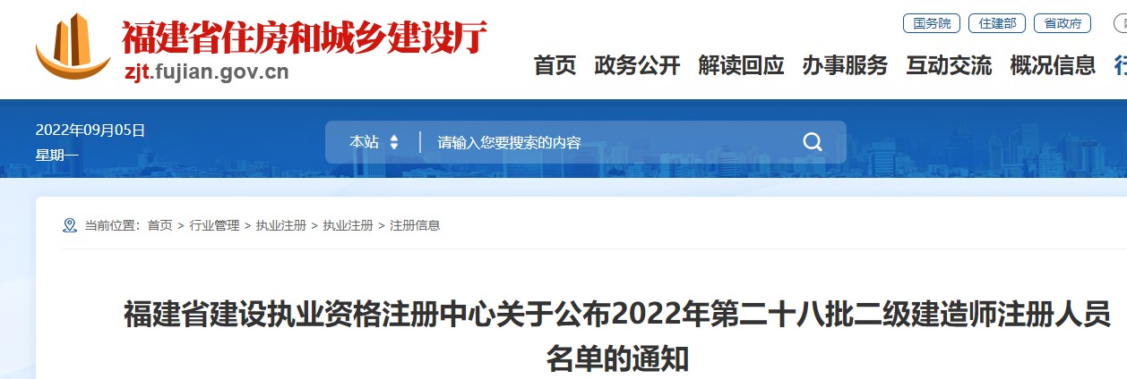 福建省關(guān)于公布2022年第二十八批二級(jí)建造師注冊(cè)人員名單的通知