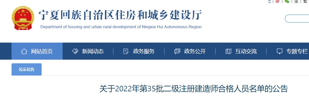 寧夏?關(guān)于2022年第35批二級注冊建造師 合格人員名單的公告
