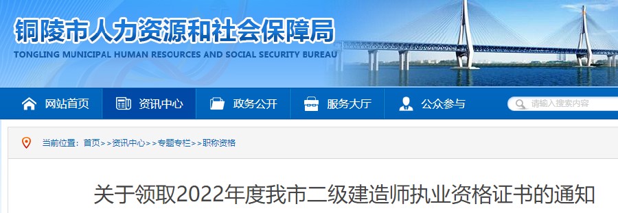 安徽銅陵市?關(guān)于領(lǐng)取2022年度我市二級(jí)建造師執(zhí)業(yè)資格證書的通知