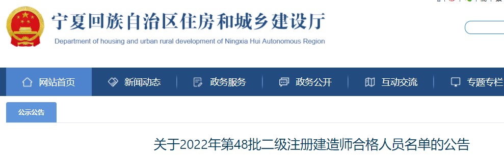 寧夏關(guān)于2022年第48批二級注冊建造師合格人員名單的公告