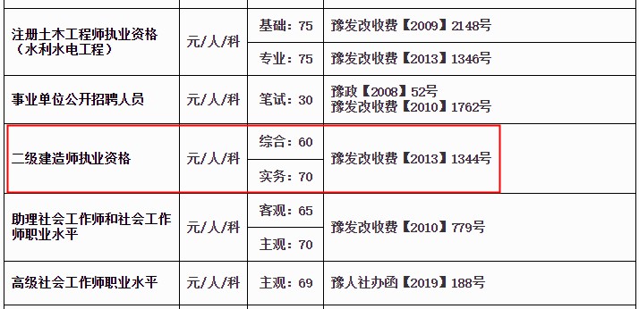 河南省人事考試中心收費標(biāo)準(zhǔn)—二級建造師