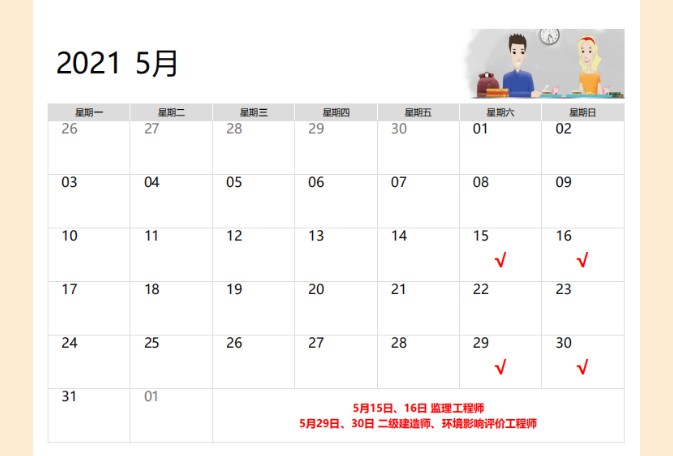 蘇州人社考試日歷:2021年二級建造師考試時間為5月29日、30日